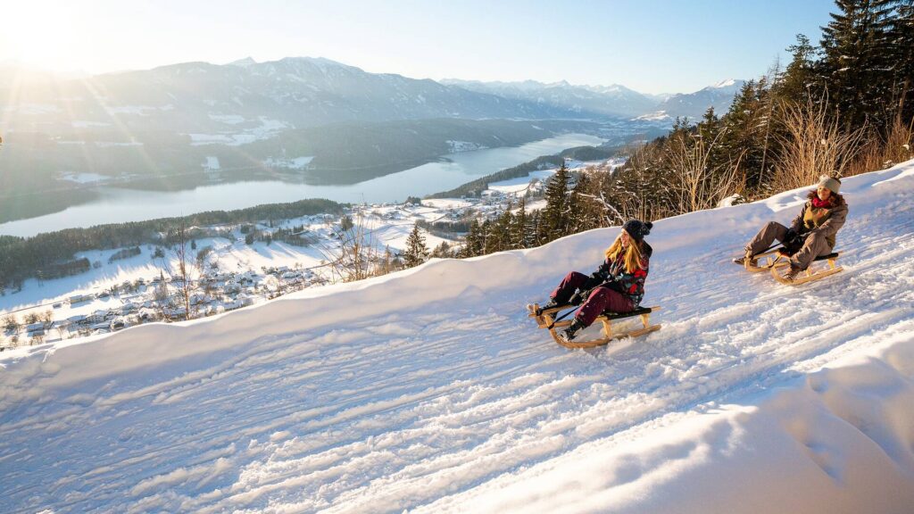 Genieten van snelheid en van de omgeving? Boek dan een rodeltocht in Bad Kleinkirchheim. Je kan met de slee de berg af.